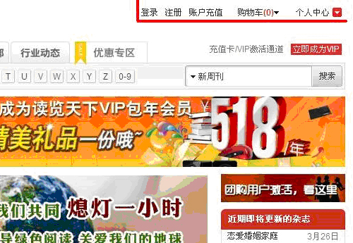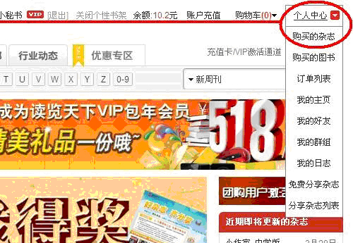二、 點(diǎn)擊網(wǎng)站首頁導(dǎo)航右上方的“個(gè)人中心—購買的雜志”