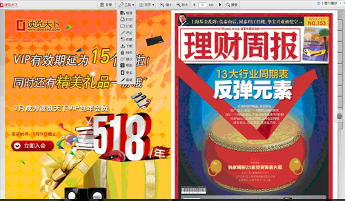 1、點(diǎn)擊“閱讀”后,打開雜志的效果,鼠標(biāo)點(diǎn)擊“箭頭”可以翻頁閱讀雜志